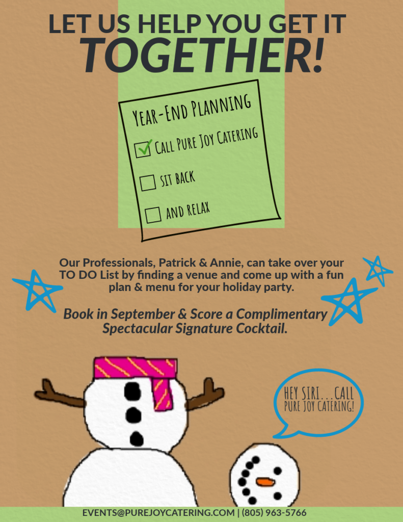 CLICK HERE to Let our Professionals Help you Get it Together and Take Over Your Holiday Party TO DO List!